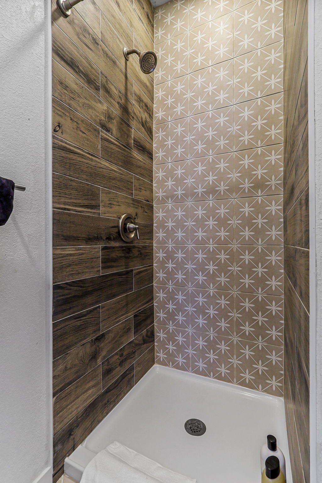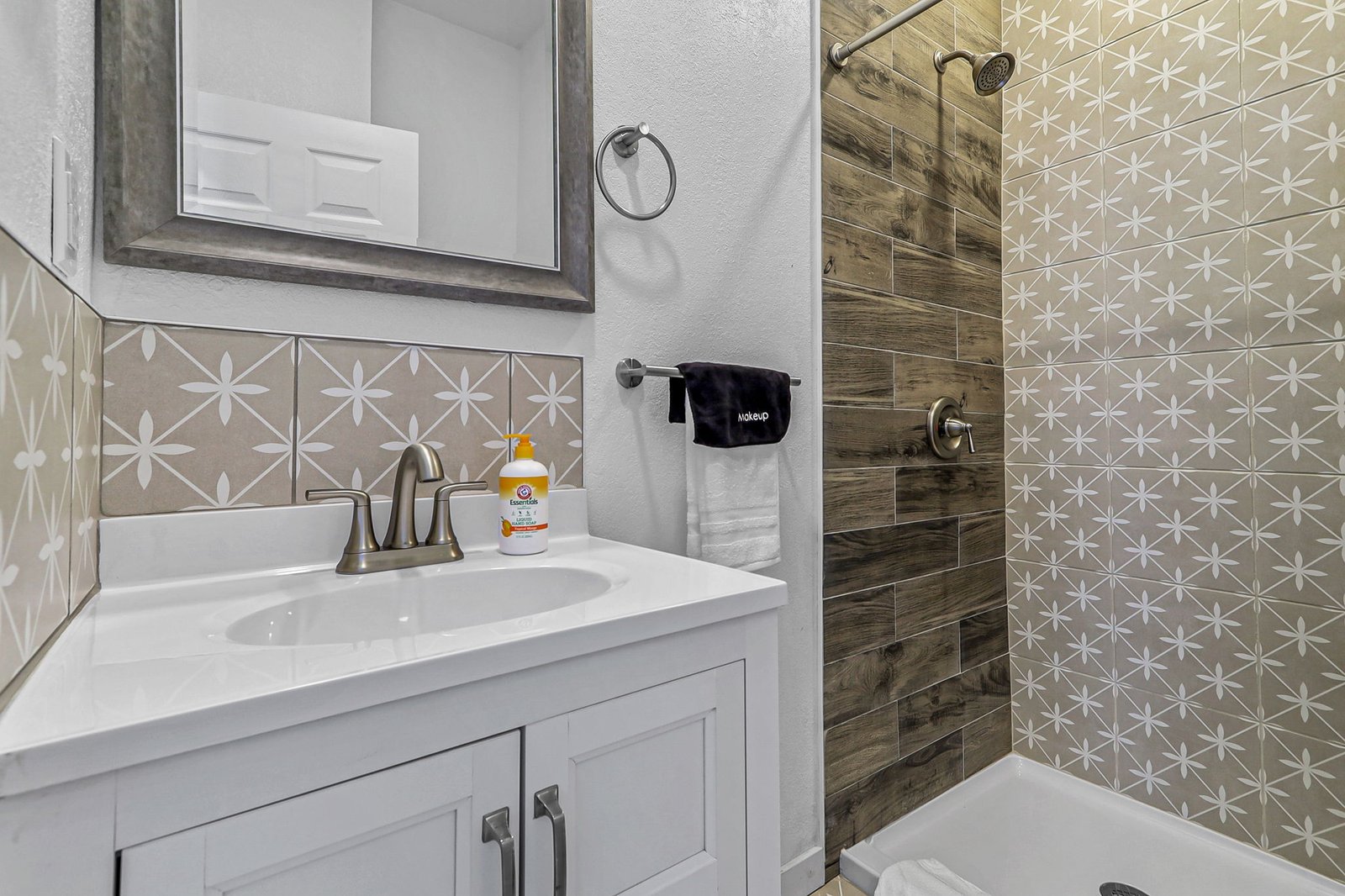 The private bedroom includes a queen-size bed, closet, dresser, blackout curtains, and ceiling fan to ensure restful sleep. Inside the bedroom, your private en-suite bathroom features a walk-in shower and the initial starter pack.