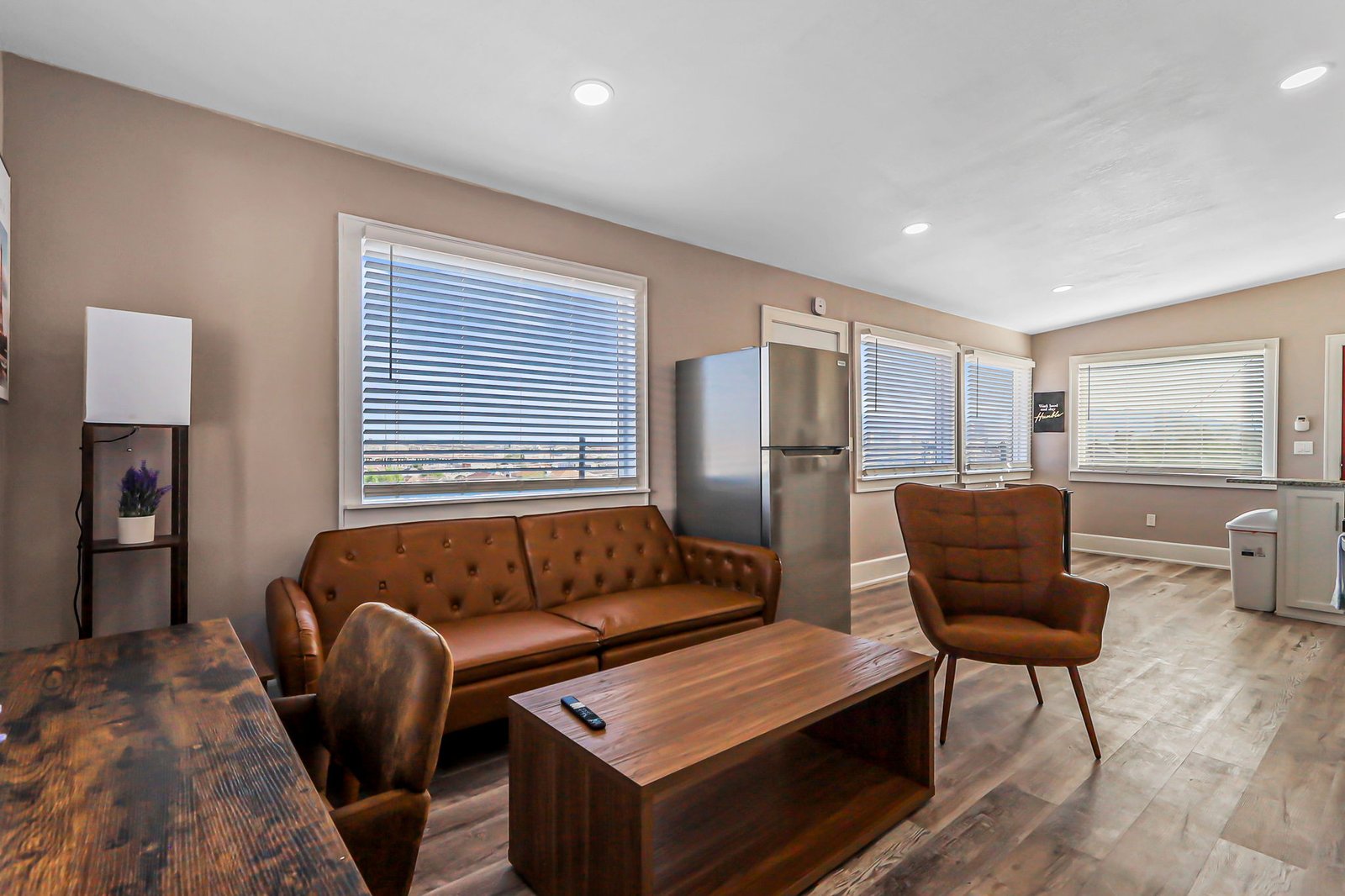 Step out onto your private balcony and soak in the sights of the courtyard, city, and mountains in the distance, a perfect spot to enjoy your morning coffee or evening wind-down!