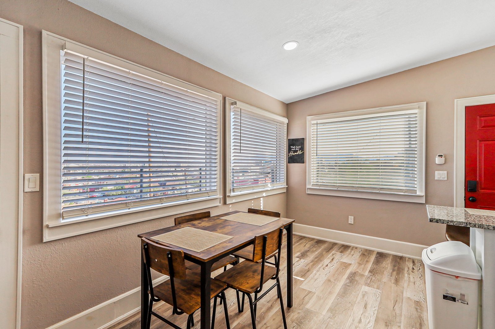 ⭐ Cozy breakfast bar for two + dining area for four with city views