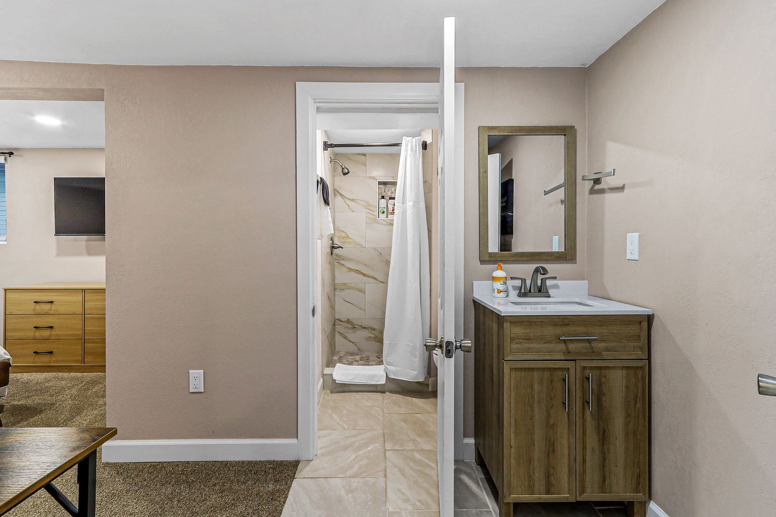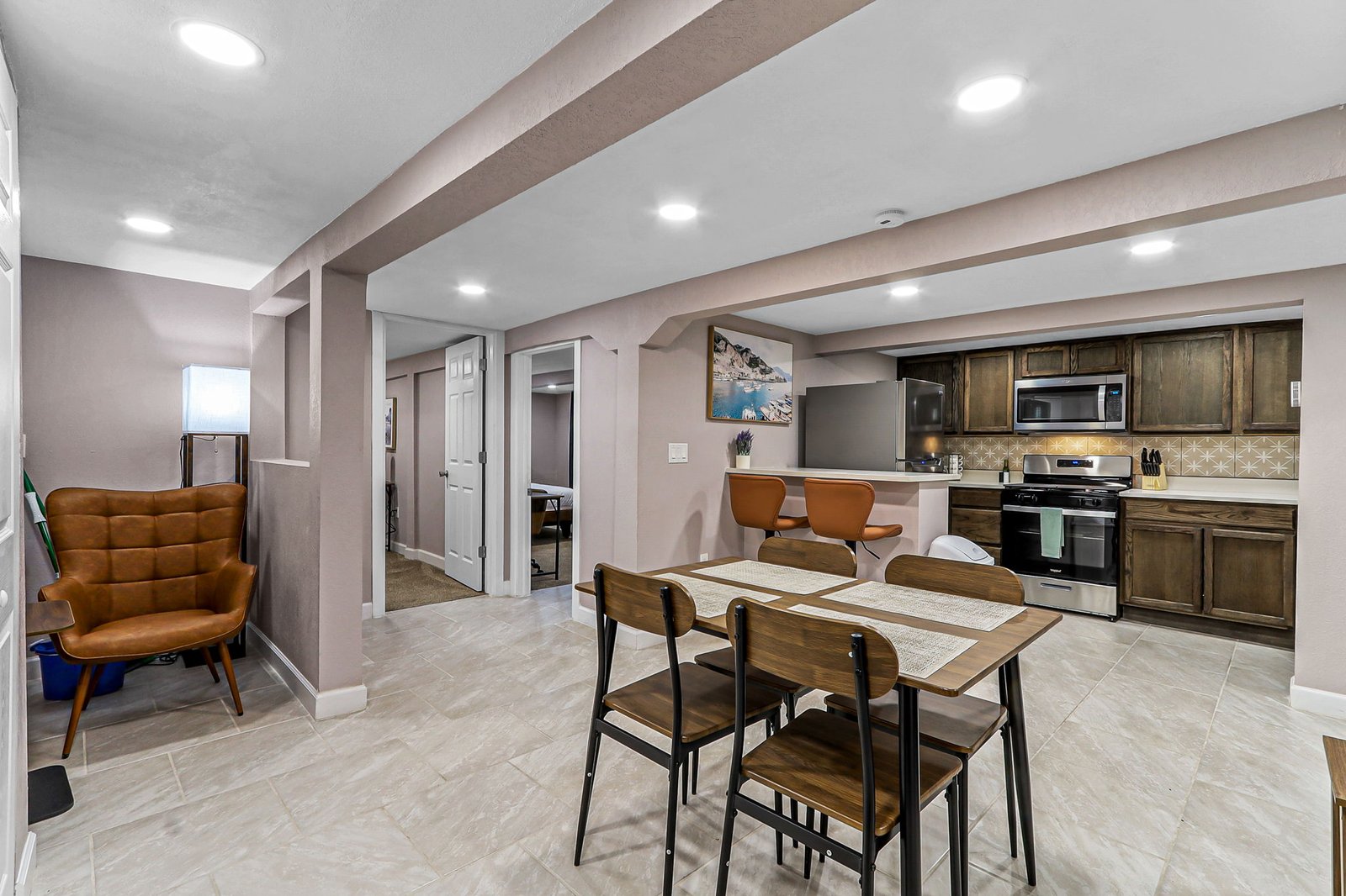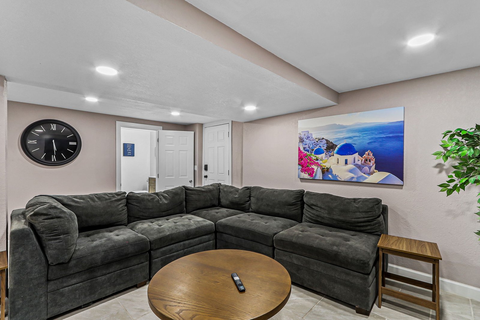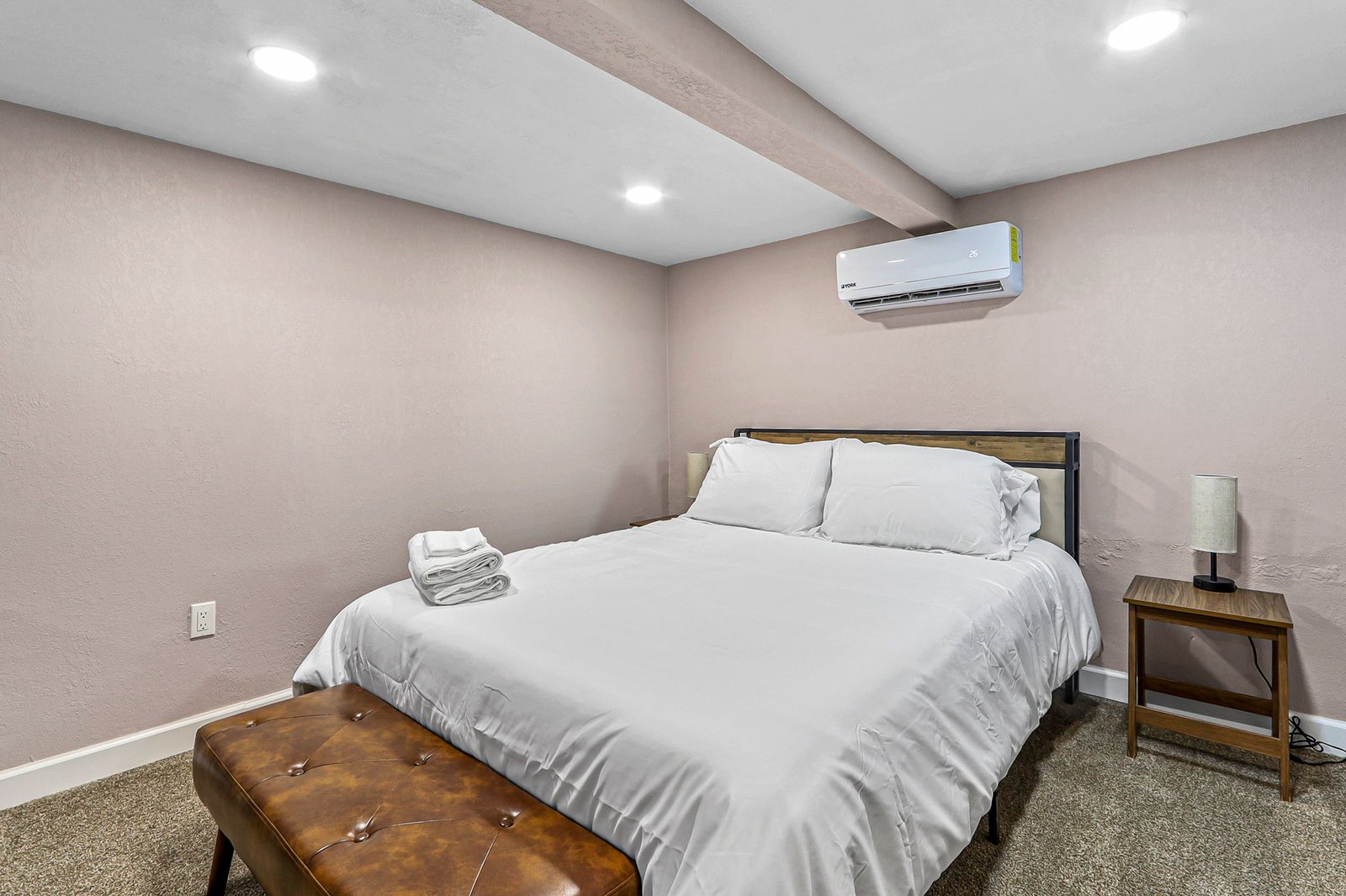 This 2-bedroom, 2-bathroom “basement” unit offers the perfect balance of comfort and functionality for families, friends, or business travelers. Step inside to an open-concept living space, complete with a large L-shaped sofa and a 58″ Smart TV, ideal for cozy evenings or catching up on your favorite shows. A mini-split system ensures a comfortable atmosphere no matter the season!