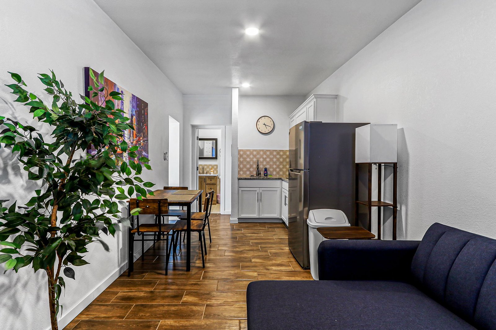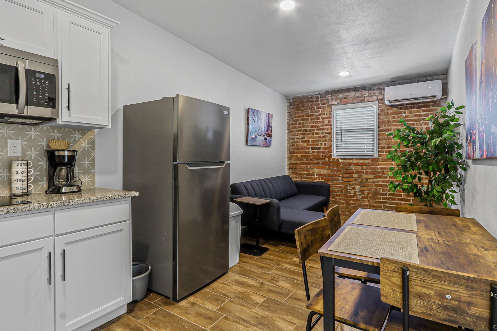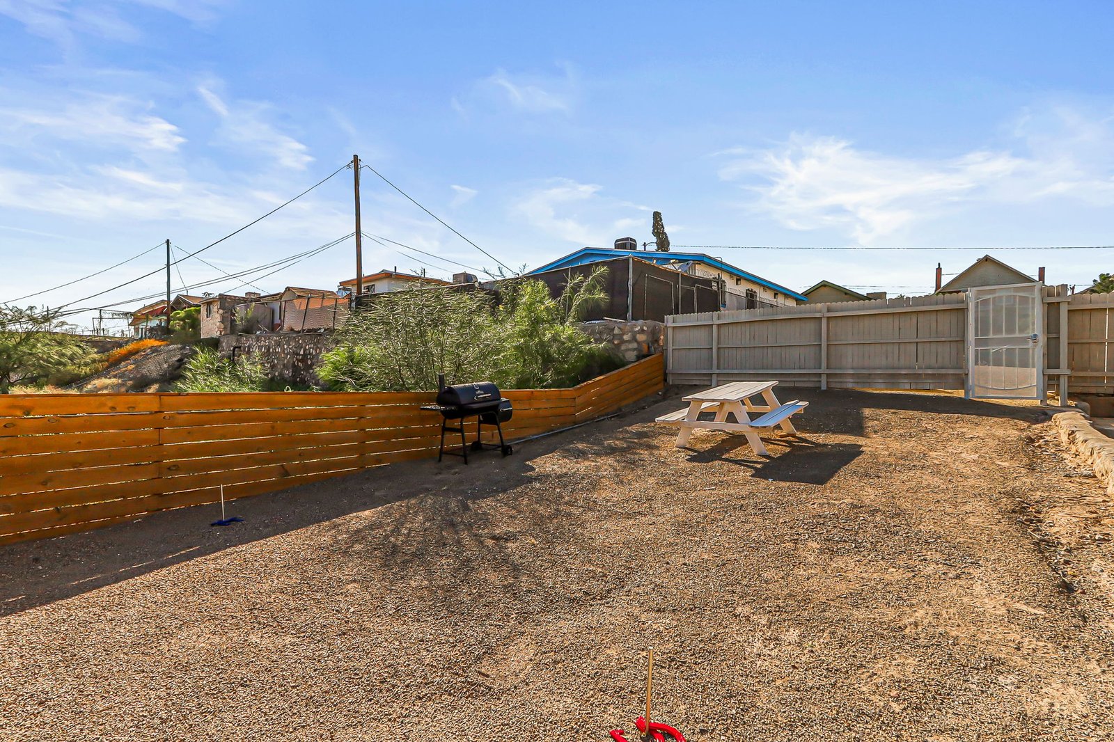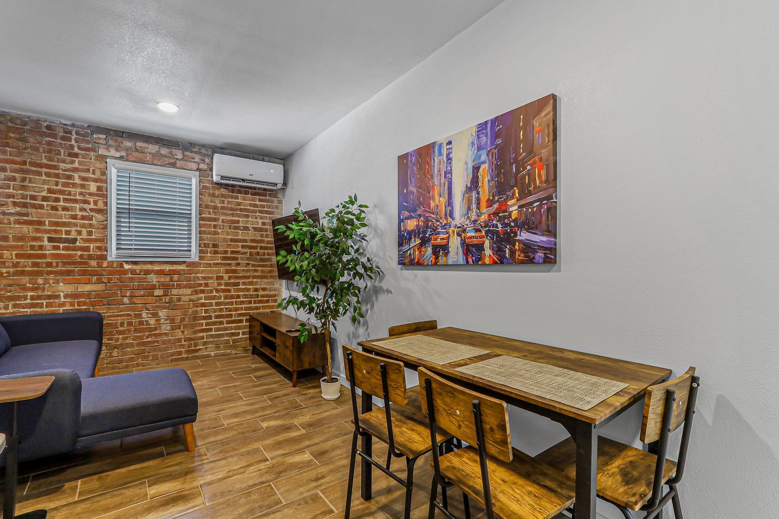 Another property by El Paso Furnished Homes. This stylish split-level 1BR combines exposed brick charm with modern décor. Relax in the open living area with 58” Smart TV or rest in the bedroom with queen bed, desk, closet, blackout curtains, and mini-split AC/heating. The kitchen offers an induction stove, fridge, and microwave with dining space. Shared laundry, gorgeous backyard skyline views, and off-street parking for 1 vehicle included.